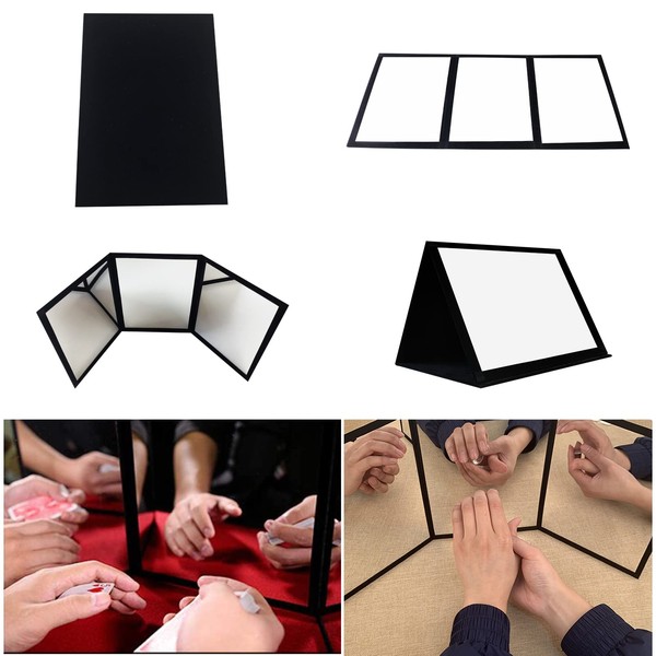 sumrica 3-Way Shatterproof Magic Mirror - Foldable Close-Up Practice Mat for Card Tricks, Portable Magician Tool with Velvet Backing