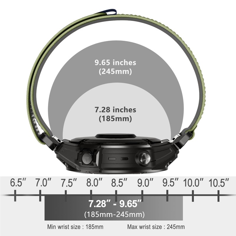 - Adjustable size: nylon trail loop bracelet. The strap is equipped with a Velcro fastener for easy and quick length adjustment
