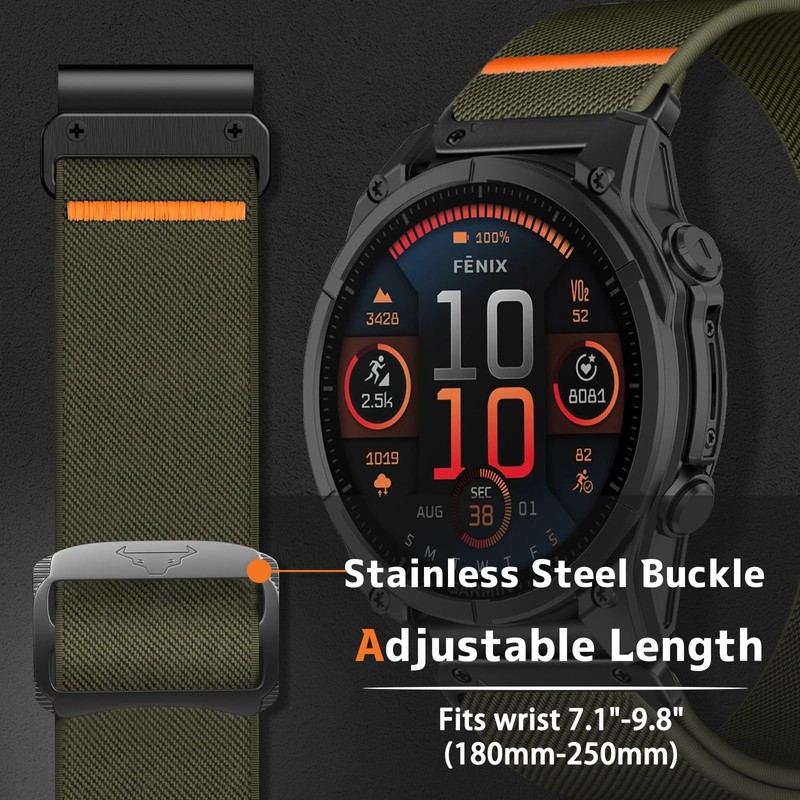 - Compatible Models: SumRioo QuickFit 26mm Nylon Strap for Garmin Fenix 8 51mm/8 Solar 51mm/7X/7X Pro/7X Pro Sapphire Solar/7X Solar/7X Pro Solar/6X/6X Pro/6X Solar/6X Sapphire/5X Sapphire/5X Plus/5X/3/3 HR, Instinct 2X/2X Solar, Epix Pro 51mm (Gen 1&2), Enduro 3/2/1, Tactix Delta/Tactix Delta Solar/Tactix 7/Tactix 7 Pro, D2 Charlie/D2 Bravo/D2 Delta PX, Descent MK1/MK2/MK3/MK2i/MK3i, Quatix 7X Solar/Quatix 6X Solar. Compatible with all QuickFit 26mm smartwatches
