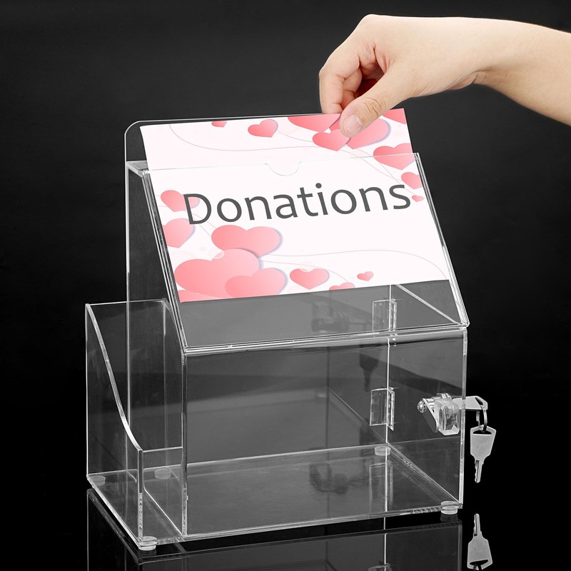 • Durable materials - our donation box is made of high quality acrylic material, stable and sturdy box is light and not bulky, the bottom has a silicone paste stable, firm and textured.