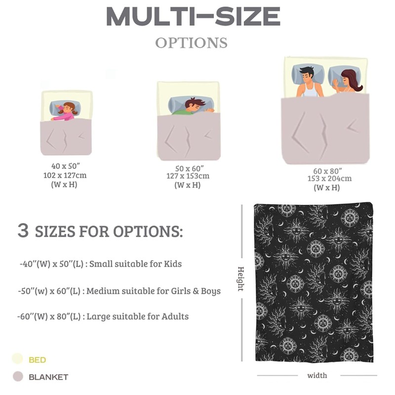 - 【Sun And Moon Blanket Perfect Gifts for Boys or Girls】:This is the perfect gift for boys and girls. Our throw blanket is an amazing and awesome gift, If you are struggling for a gift, this throw is a perfect choice, it is cute and soft, you can take it anywhere. Children's day gift, School gift, holiday gifts, birthday gifts, Christmas gifts.