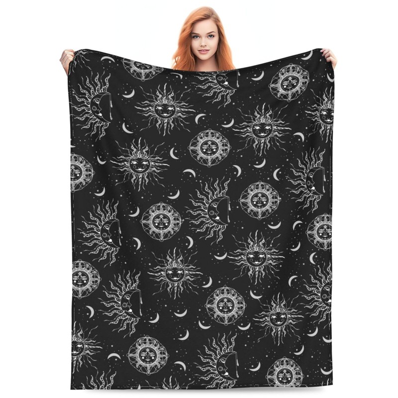 Sun and Moon Blanket 50"x40" Inch Cozy Fluffy Plush Crescent Moon Blanket Celestial Blanket Soft Flannel Hippie Throw Blanket for Men Women Boys Girls Christmas Sofa Bed Couch