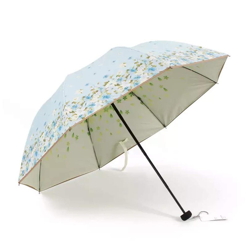 Sun and Rain Umbrella SPF 50+ Folding Travel Sun Umbrella Anti-UV Protection Parasols Windproof Double Layer Umbrella (Blue)
