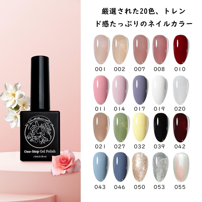 - Set of 6, Popular Colors: Sun&Beam Nails popular one-step gel nail set of 6. Color Numbers: 17, 20, 27, 32, 39, 42 (15ml each)