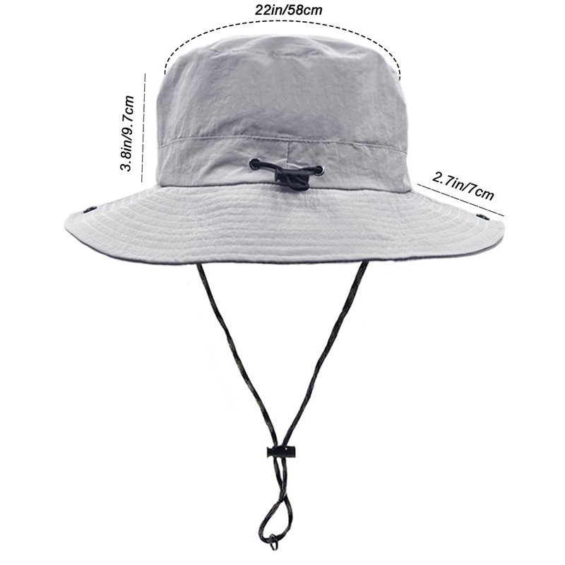 Sun Bucket Hats for Men Women Waterproof Rain Fishing Hat with Chin Strap Quick Dry Packable Boonie for Traveling Safari, Grey, Medium