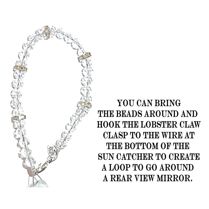 Dress up your window or rear view mirror with these beautiful Crystal Sun Catcher Prism ornaments. Made with strong 7 strand wire, stainless steel jump rings and using a strong 14mm Silver clasp, these dangling beauties are both strong and eye catching. Also these are all made by hand here in the USA!! We take pride in our products and stand behind them 100%.