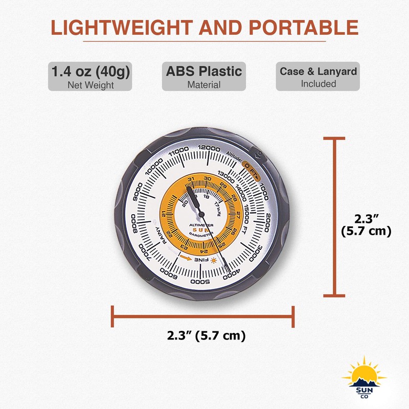 Sun Company Altimeter 202 - Battery-Free Altimeter and Barometer | Weather-Trend Indicator with Soft Leather Case | Reads Altitude from 0 to 15,000 Feet
