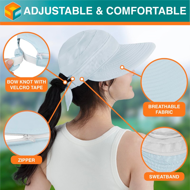 SUN CUBE - Sombrero de sol para mujer para protección UV al aire última intervensión, sombrero de ala ancha, sombrero de playa convertible con cierre, Azul/claro, One Size