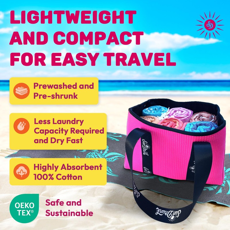 - LIGHTWEIGHT AND COMPACT FOR EASY TRAVEL: Rolls up small, making it the ideal travel beach towels oversized sandproof for holidays, outdoor adventures, and everyday use. Traditional towels take up too much space in your bag, but this lightweight beach towel is designed for travelers who need a space saving xl turkish beach towel. Whether you're heading to the beach, or a weekend getaway, Sun Drunk Turkish cotton beach towel fits effortlessly in your backpack or suitcase.