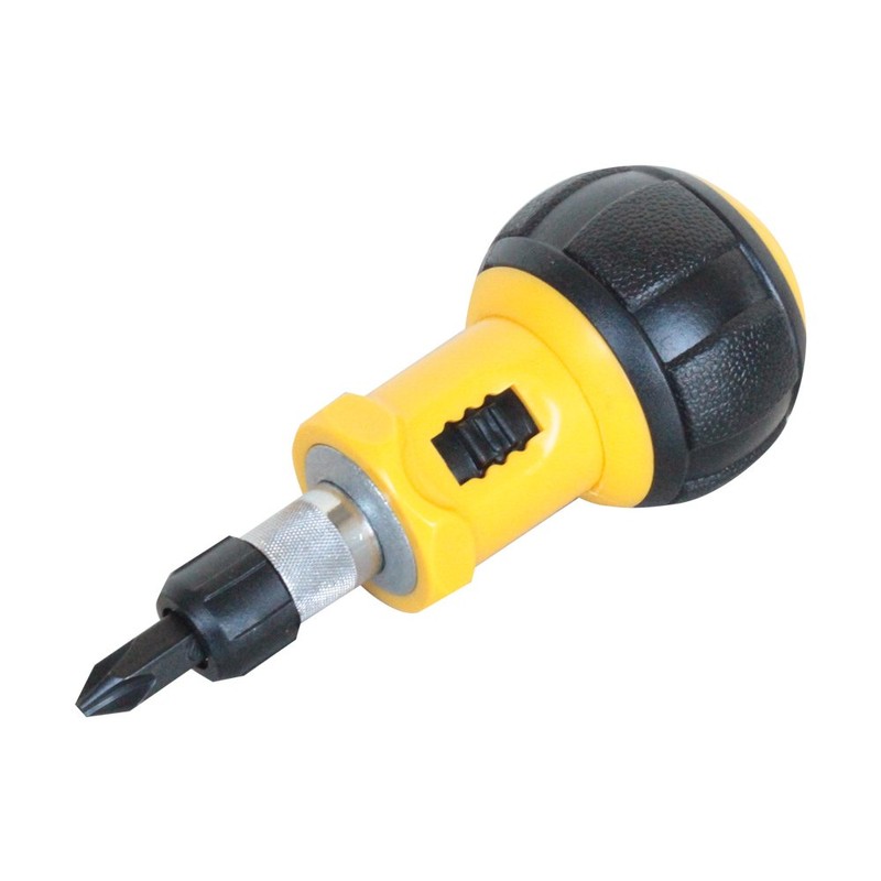 Compact and easy to carry. Cushioned grip for easy grip For tightening screws in tight areas. Ratchet mechanism for easy tightening Package Size: Length: 5.1 inches (130 mm), Width: 3.1 inches (78 mm), Height: 1.6 inches (40 mm); Package Weight: 5.2 oz (138 g); Included Bit: 2 heads + 0.2 x 1.2 inches (2 x 6 x 30 mm); Total Length: 3.3 inches (85 mm).