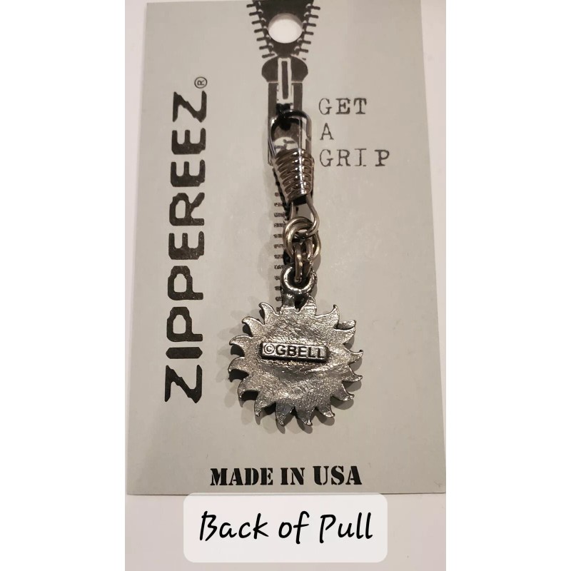 SUN GUARDIAN® BELL ZIPPEREEZ® ZIPPER PULL. ZIPPEREEZ pulls are made in the USA using state of the art lead-free pewter. Each zipper pull comes with a 1-inch lanyard hook and a display card. Zipper pull measures approximately 2 x 1 inch with lanyard hook attached. Use for jackets, backpacks, or even as attachment to a key ring.
