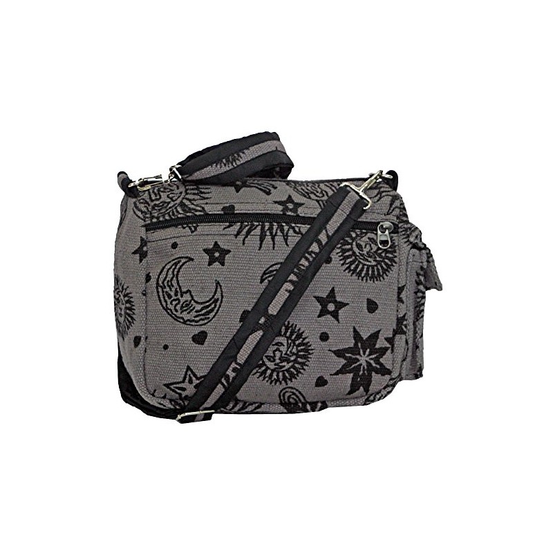 Sun Moon Stars and Planets Celestial Hippie Boho Crossbody Single Shoulder Bag (Gray)
