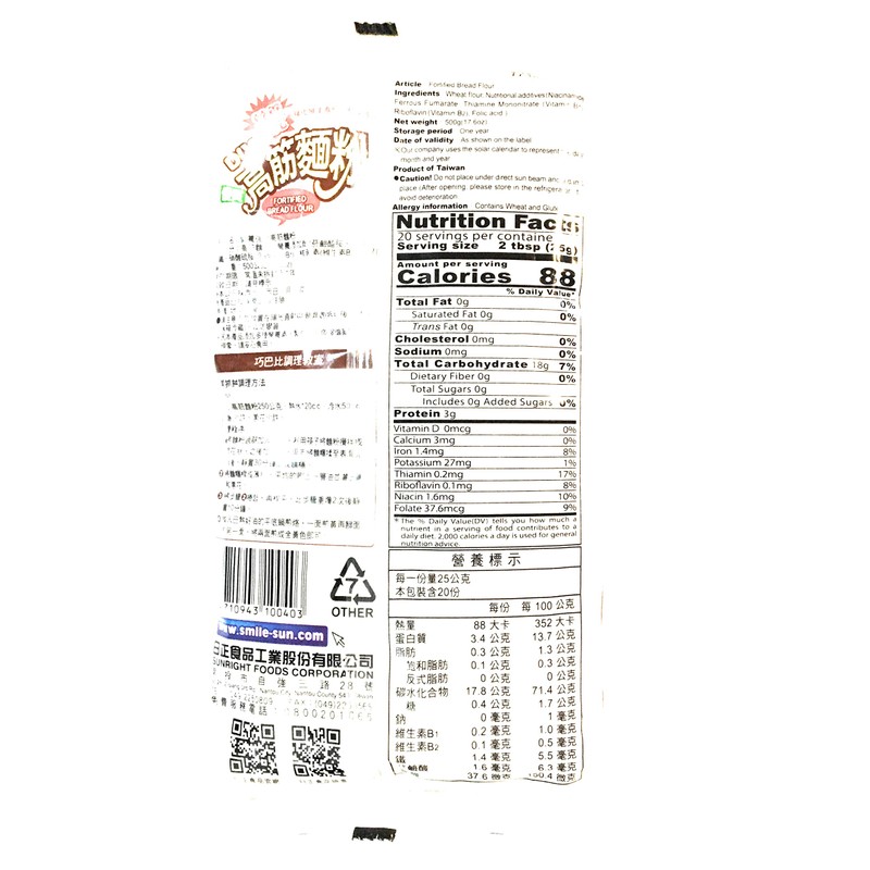 Sun Right Fortified Bread Flour 17.6 Oz(2 Pack)高筋麵粉