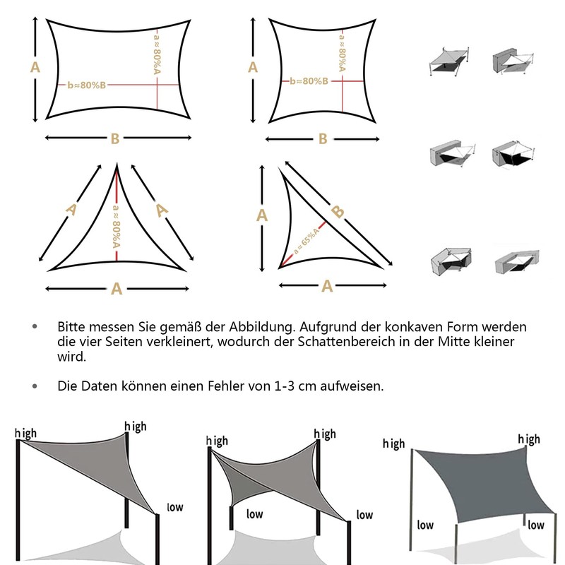 - OPTIMAL WATERPROOF - Sun shade sail is equipped with a (water resistant) PU coating, which provides excellent water protection. A slight tilt of 20 to 40 degrees maximises tension and ensures efficient water drainage.