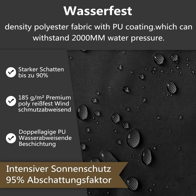 - High UV protection and strong shade – made of 100% high-density polyester fibre (185 g/m² polyester polyester), water-repellent awning not only provides outstanding tear resistance and weather resistance, but also blocks over 95% harmful rays.