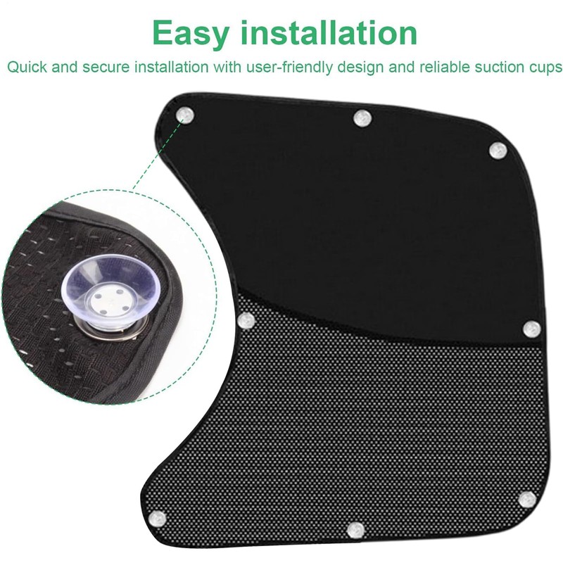 - Quick and Easy Setup: Achieve fast and easy installation as the sun shade secures to side window using snap or suction cup options, eliminating the need for tools while providing a fine fit within half a minute