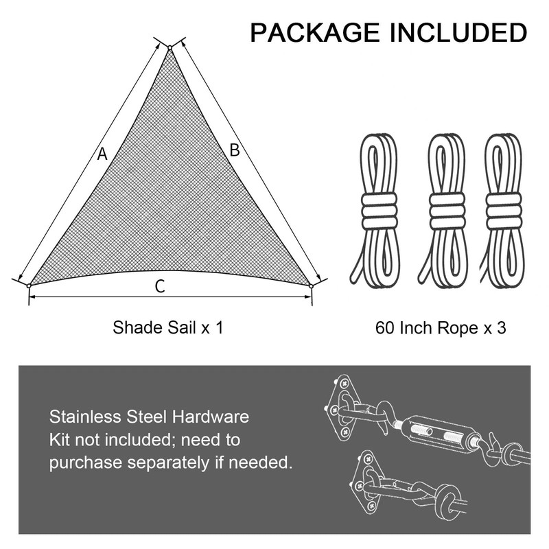 - 【Measurements】 Measuring the distance between D-rings when fully extended, allowing an extra 1.5 to 2 feet for the hardware kit. Please note that the sail size may vary by ± 4 inches. Hardware kit sold separately.