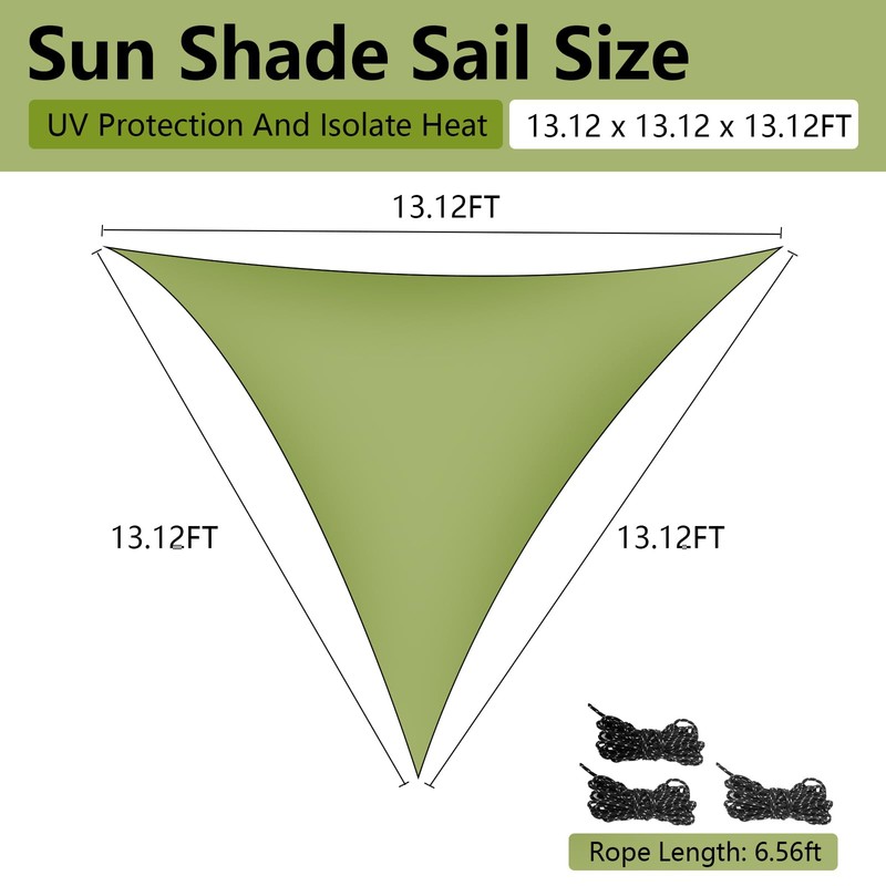 Sun Shade Sail Triangle Canopy, 13x13x13 Army Green Outdoor Sun Shade Sail, Sand UV Block UPF50 Canopy, Heavy Duty, for Outdoor Patio and Garden, Yard Activities