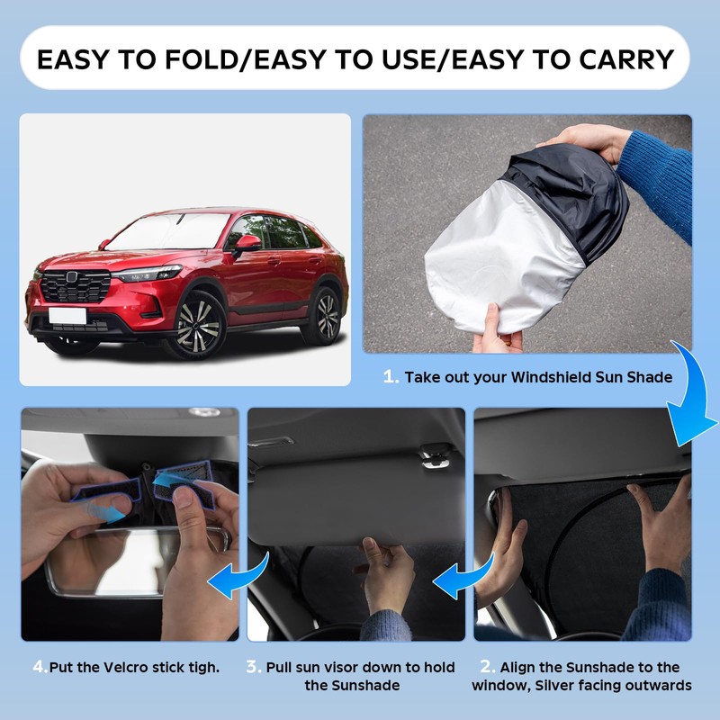 - 【Vehicle Specific 】Sunshade windshield Custom for Honda HR-V HRV 2021 2022 2023 2024--You've spent too much time in the California and Texas sun, buy it now, Please don’t waste time,reject the heat, quality products - Collapsible sun shade can be full covered on windshield and No gap. Fits like a charm!
