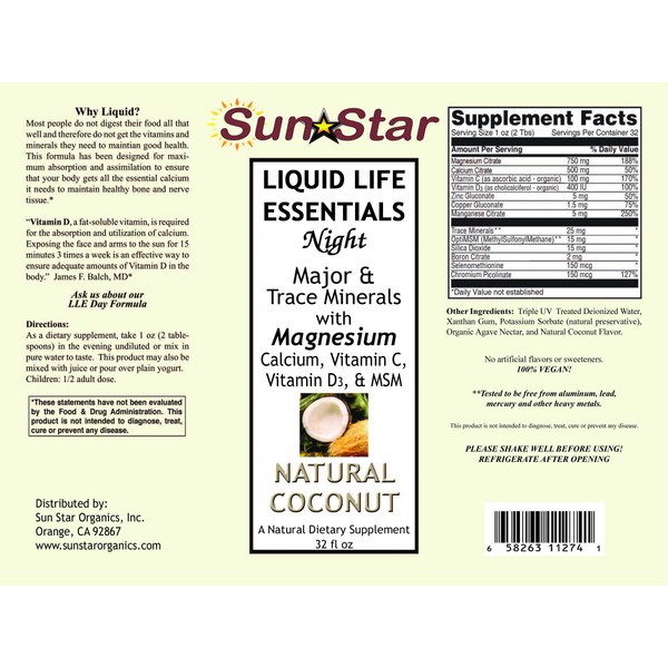Sun Star Organics Liquid Life Essentials Night Formula (Coconut)