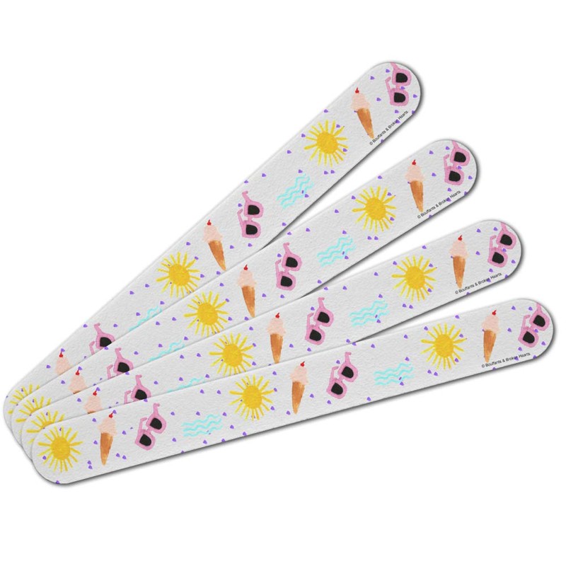 Sun Surf Ocean Beach Ice Cream Pattern Double-Sided Nail File Emery Board Set 4 Pack