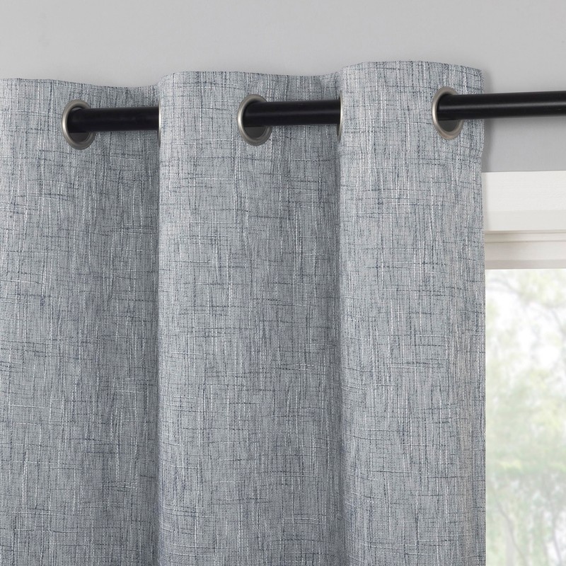 Sun Zero Aldwin Slub Texture Magnetic Closure 100% Blackout Grommet Curtain Panel, 40" x 84", Washed Blue
