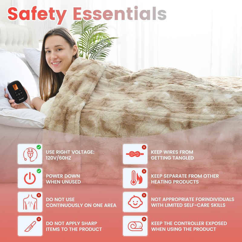 - Safe:The Sunable heated throw blanket has ETL safety certification. In addition, it has 0.5-12 hours automatic shut-off to keep you and the heated throw electric blanket safe, includes a reliable temperature monitoring system for overheating protection,Provide you with safe and long-lasting warmth,making it a reliable choice for overnight use.