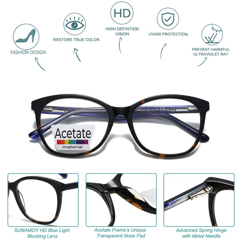 SUNAMOY Fashion Acetate Frame Anti Blue Light Readers for Women
