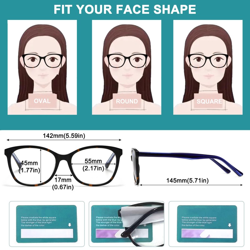 • Luxury Level Material-Acetate: The materials of frame and arms used in our eyeglasses are the "acetate", it used for luxury brand glasses. Compared to the ordinary PC and TR glasses materials, acetate material has high light permeability, looks like a better quality; If the sweat more, corrosion resistance, not easy to fade; Skin-friendly and non-allergic (in the metal-sensitive population)