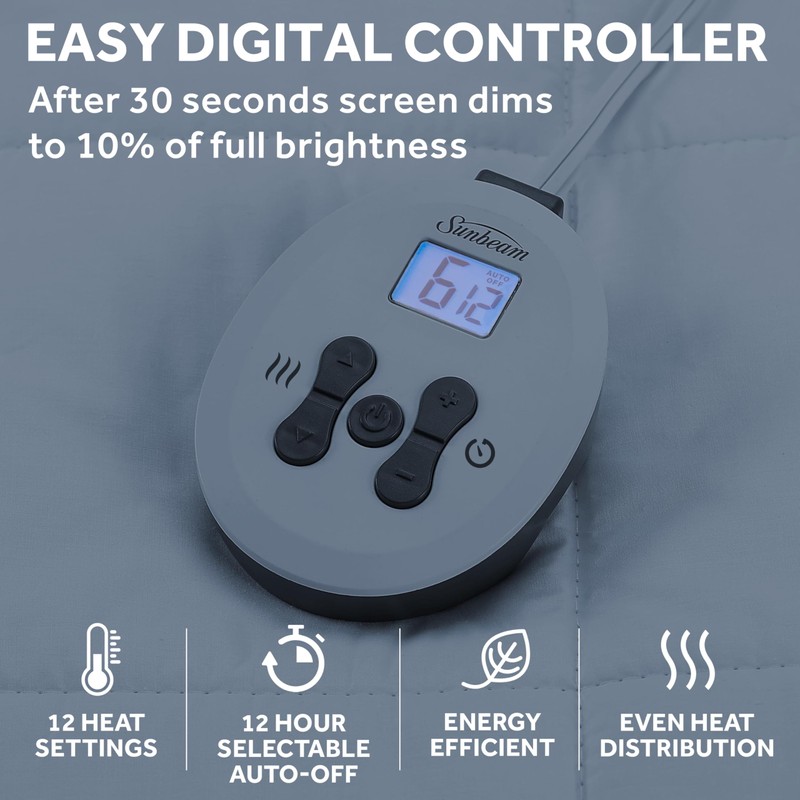 - USER-FRIENDLY DESIGN: Electric blanket with digital controller and LED backlit blue display for easy viewing at night