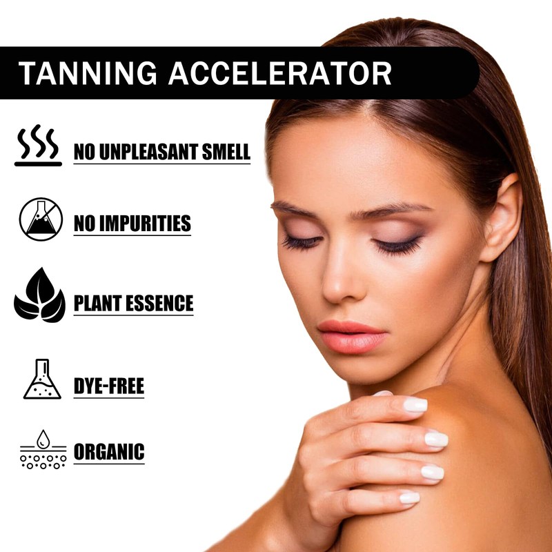- 【Suitable for All Skin Types & Tanning Levels】Whether you're a tanning enthusiast or just starting your journey, our Sunbed Tanning Accelerator works on all skin tones. It helps achieve a natural-looking tan without patchiness or streaks, making it essential for achieving your perfect sun-kissed glow.