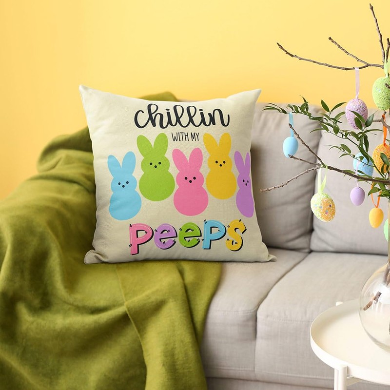 Sunboom Easter Pillow Covers 18x18 Set of 4, Easter Decorations Throw Pillow Cases, Happy Easter Bunny Peeps Decor, Easter Rabbit Decorations Spring Throw Pillow Cover for Home Sofa Couch
