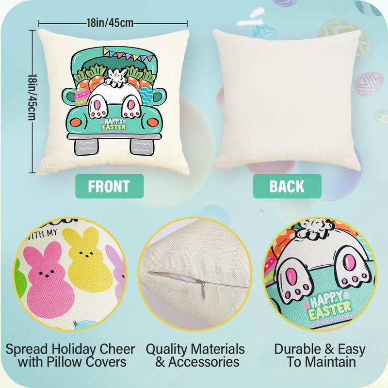 • 【Versatile Decor Upgrade】 With our Easter pillow covers 18x18 set of 4, you have the creative freedom to spruce up various corners of your home. Scatter Easter pillow covers across your sofa, bedroom, or even outdoor spaces to effortlessly infuse the spirit of Easter into every nook and cranny.