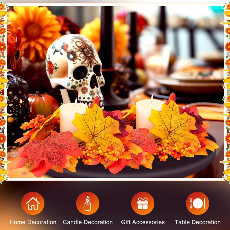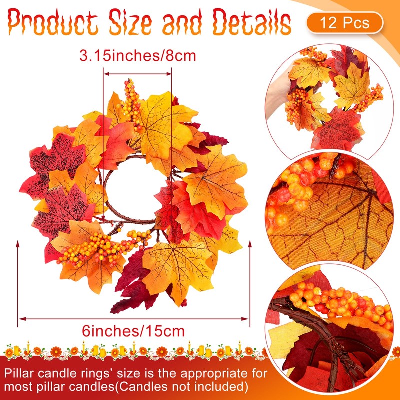 Suncalla 12 Pcs Thanksgiving Candle Rings Wreaths 6 Inch Maple Leaf Candle Holder Rings for Thanksgiving Autumn Party Home Tabletop Mantel Decorations