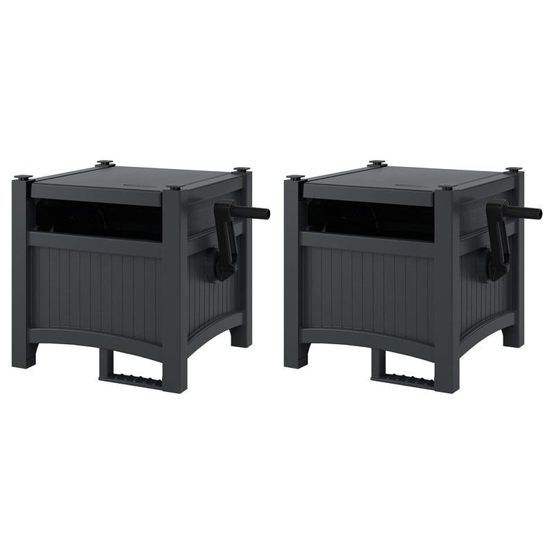 Suncast Hideaway 100 Foot Garden Hose Reel for 5/8 Inch Hoses with Stay Up Lid and Crank Handle for Outdoor Storage, Cyberspace, 2 Pack