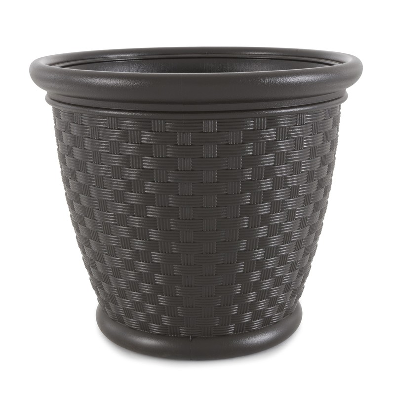 Suncast Sonora 18 Inch Resin Wicker Decorative Flower Planter, Brown (4 Pack)