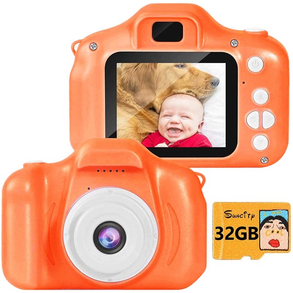 SUNCITY Kids Digital Camera, Christmas Birthday Gifts for Boys Age 3-9, HD Digital Video Cameras for Toddler, Portable Toy for 3 4 5 6 7 8 Year Old Boy with 32GB SD Card-Orange