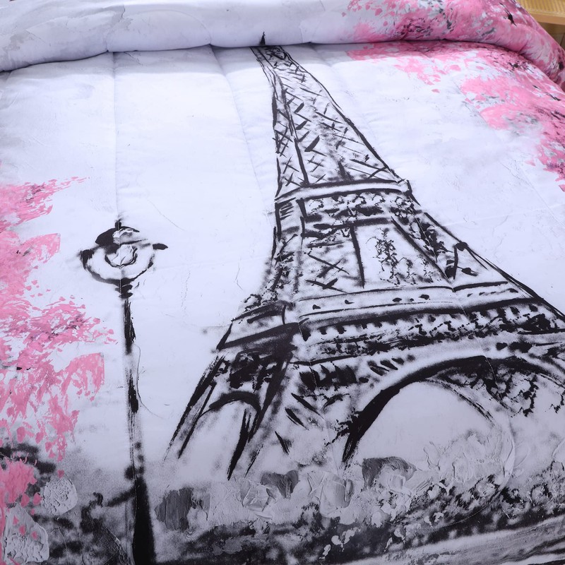 - PARIS EIFFEL TOWER THEMED - Aesthetically pleasing design of Paris Eiffel Tower theme comforter set will brighten up and adds a romantic style bedroom for your bedroom. Perfect Quilted Duvet for Spring, Winter, Summer or warmer weather, all-Season down alternative comforter, can be used as quilt, bedspread, blanket, bed cover.