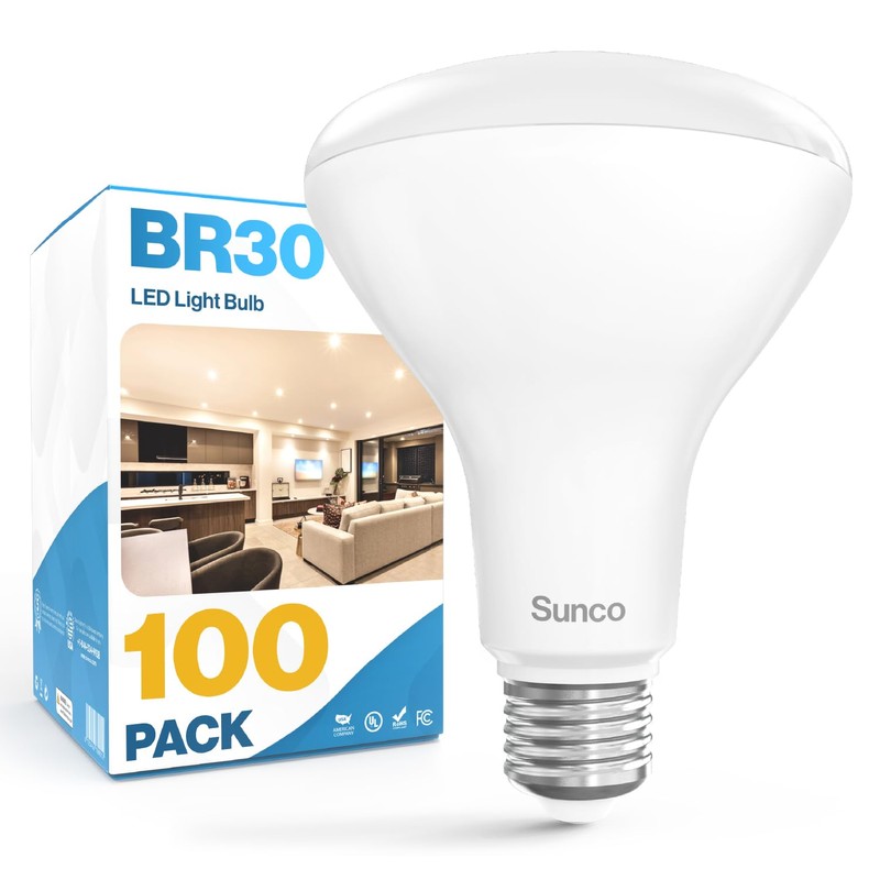 Sunco 100 Pack BR30 Light Bulbs LED, Recessed Can Light Bulbs, Indoor Flood Bulb, 850 LM, 11W (65W Equivalent), 5000K Daylight, Dimmable, E26 Base, for Home, Kitchen, Bedroom UL