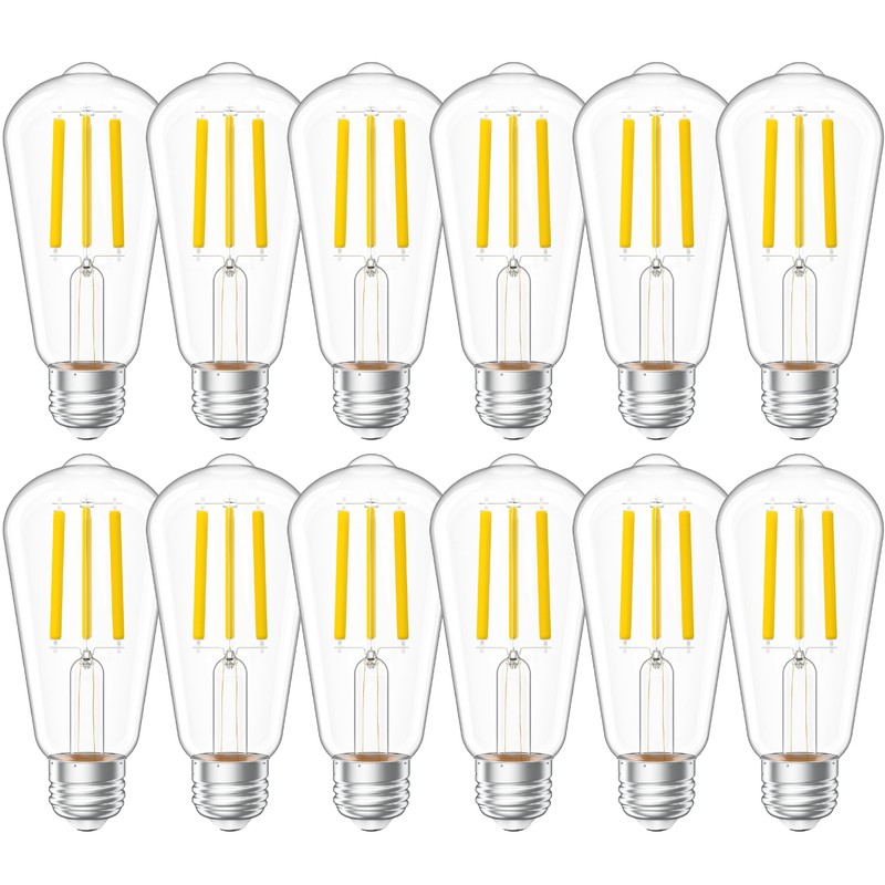 Sunco 12 Pack Vintage LED Edison Bulbs, 75W Equivalent 8.5W, 1000 LM, Dimmable ST58 Filament, 4000K Cool White, E26 Medium Base, Clear Glass Light Bulbs