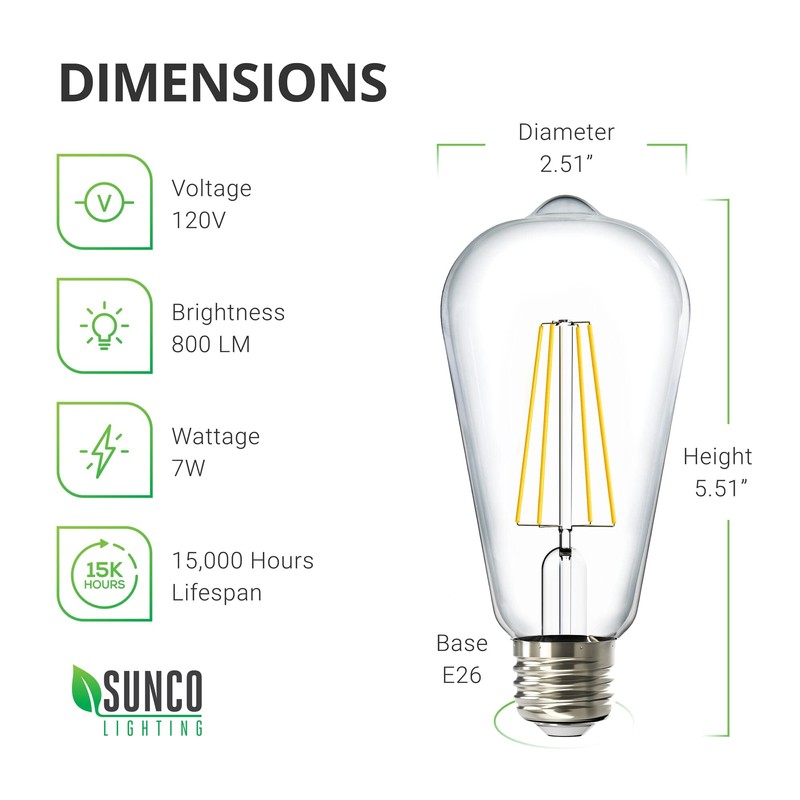 - ✅ UL CERTIFIED & TITLE 20 COMPLIANT - We uphold the highest standards for all our products by testing each product for optimal performance and safety. Sunco's LEDs are the sustainable choice offering a longer lifetime than traditional bulbs (halogen, incandescent, fluorescent) to reduce maintenance. Our auto on/off ST64 LED lights contain no mercury and don't emit UV or IR.