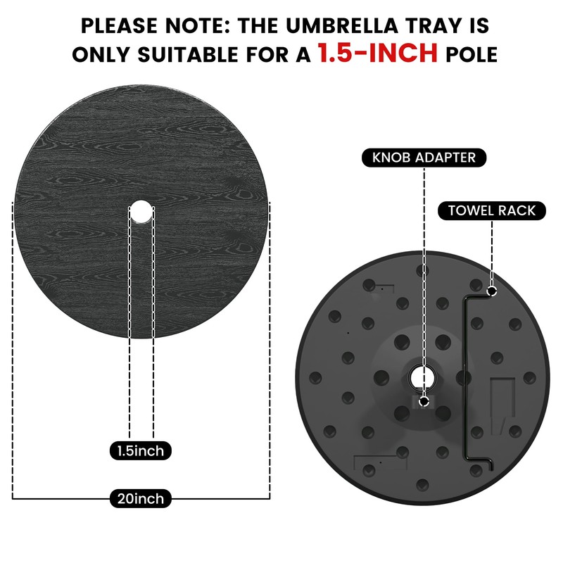 - Pay Attenton: This patio umbrella table only fits 1.5 inch diameter patio umbrella poles. Please notice Umbrella Base is NOT Included