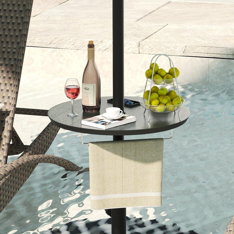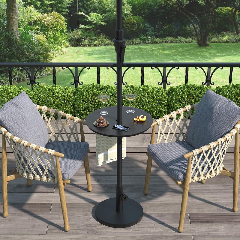 - Comfortable Design: Black finish maintains its appearance for years to come. Simple design but elegant makes this umbrella table tray looks really good