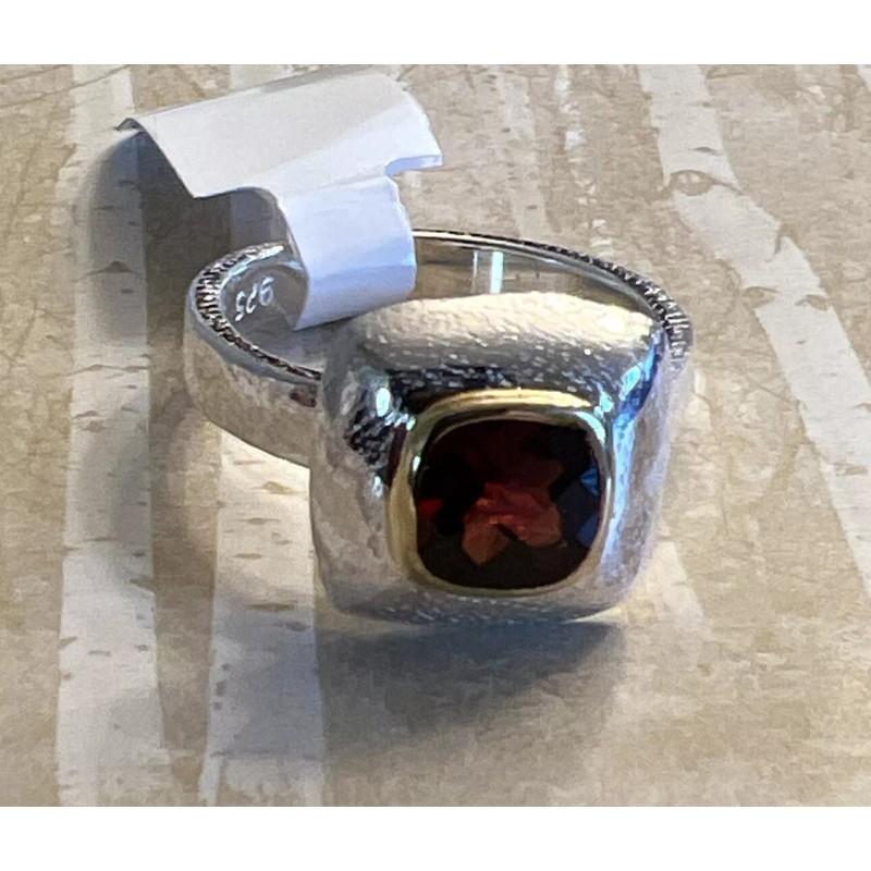 NWT Sundance Catalog Silver Gold Vermeil “Garnet Shield Ring” Size 7 $130.