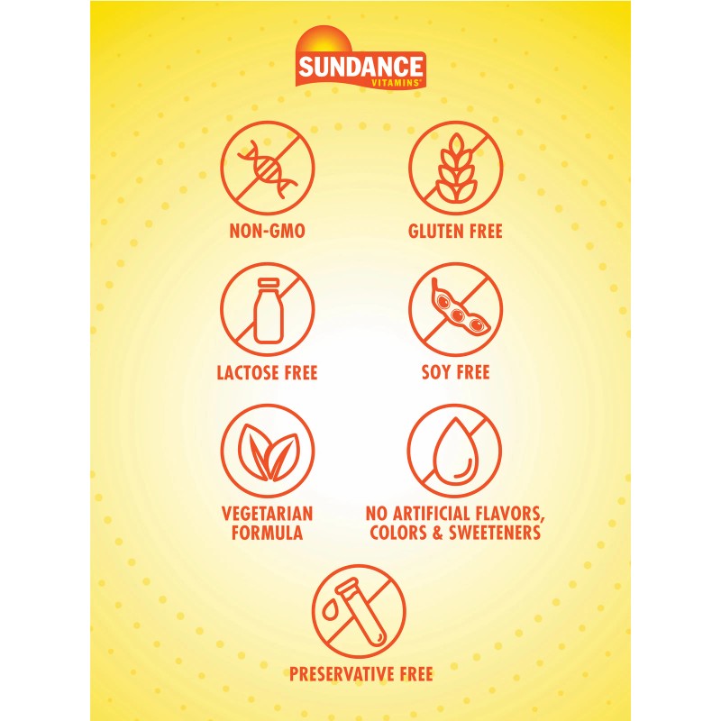 Our formula is vegetarian friendly, non-GMO, and free of gluten, wheat, yeast, milk, lactose, soy, artificial colors, flavors, sweeteners, and preservatives. The vitamins and supplements from Sundance are backed by three generations’ worth of industry knowledge. All products undergo rigorous processes and procedures to prioritize quality and safety. With the belief that health and happiness go hand-in-hand, Sundance Vitamins invites you to bask in the sunshine that comes from introducing these high-quality vitamins and supplements into your life.