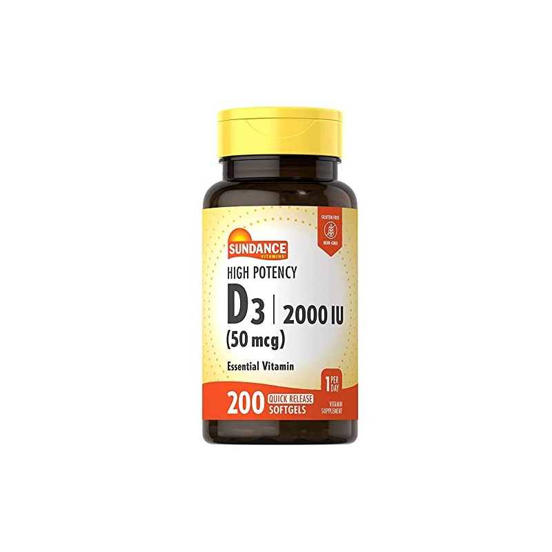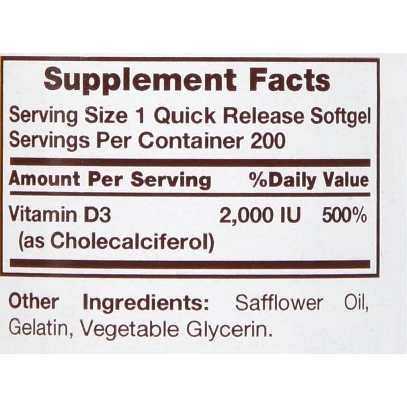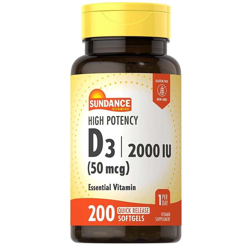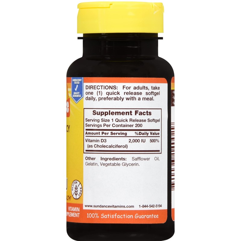 Sundance Vitamins High Potency D3 2000 IU Vitamin Supplement Quick Release Softgels - 200 ct, Pack of 6