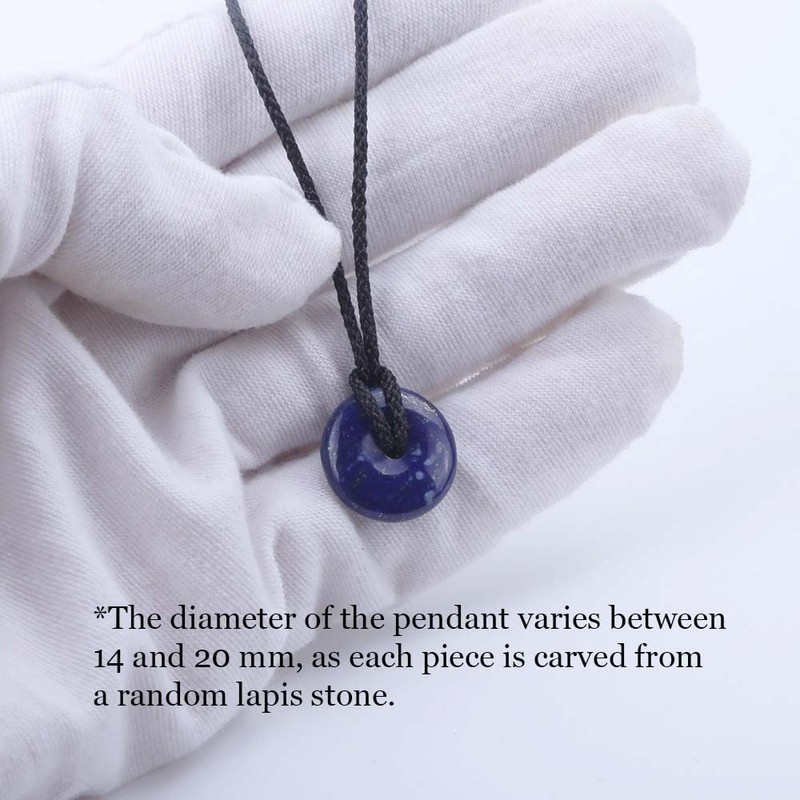 • Los colgantes difieren en diámetro, de 14 a 20 mm, ya que cada pieza está tallada en cualquier pieza de piedras de lapislázuli natural.
