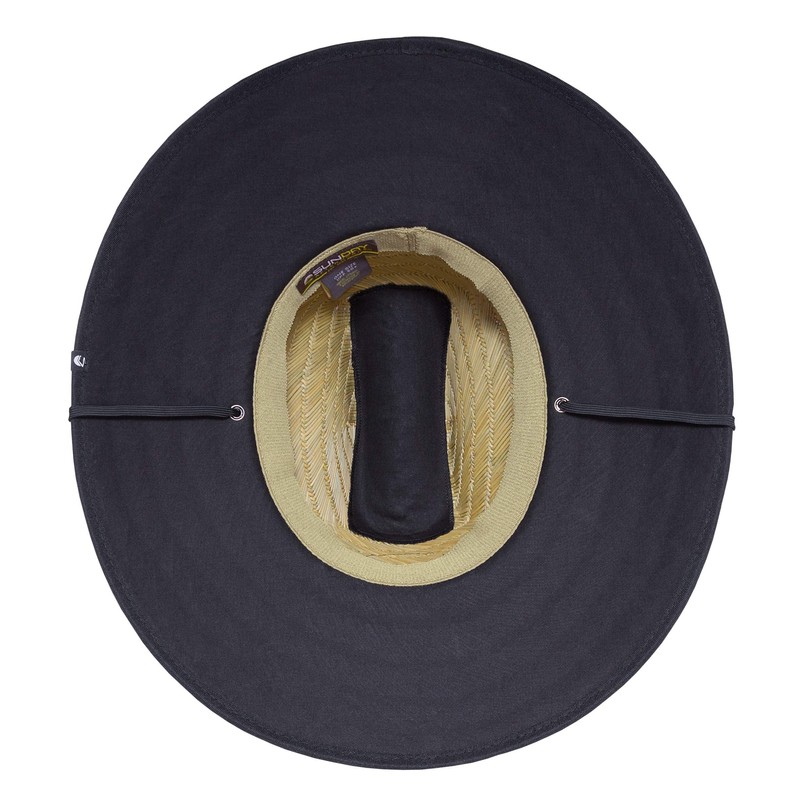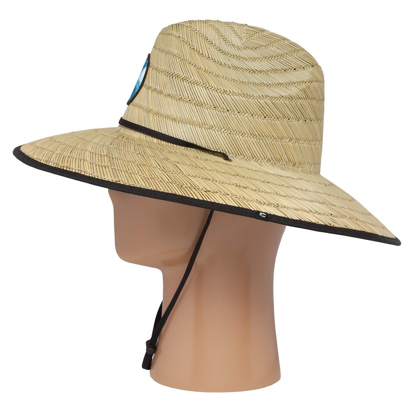 Sun worshippers beware—the Sun Guardian Hat has arrived! Made from 100% natural straw, this classic lifeguard hat has been given a serious upgrade: a UPF 50+ top-of-crown liner and brim, an elasticized sweatband for a custom fit, a dark underbrim to reduce glare, an adjustable and technical chinstrap for when the wind picks up, and custom artwork by Carlos del Rio on the crown patch for a special touch. Ideal for outdoor enthusiasts who work and play in full sun.