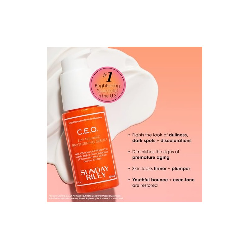 Sunday Riley C.E.O. Rapid Flash Brightening Serum, 1.0 Fl Oz - Producto Original de Alta Calidad, Entrega Rápida y Segura, Garantía Incluida