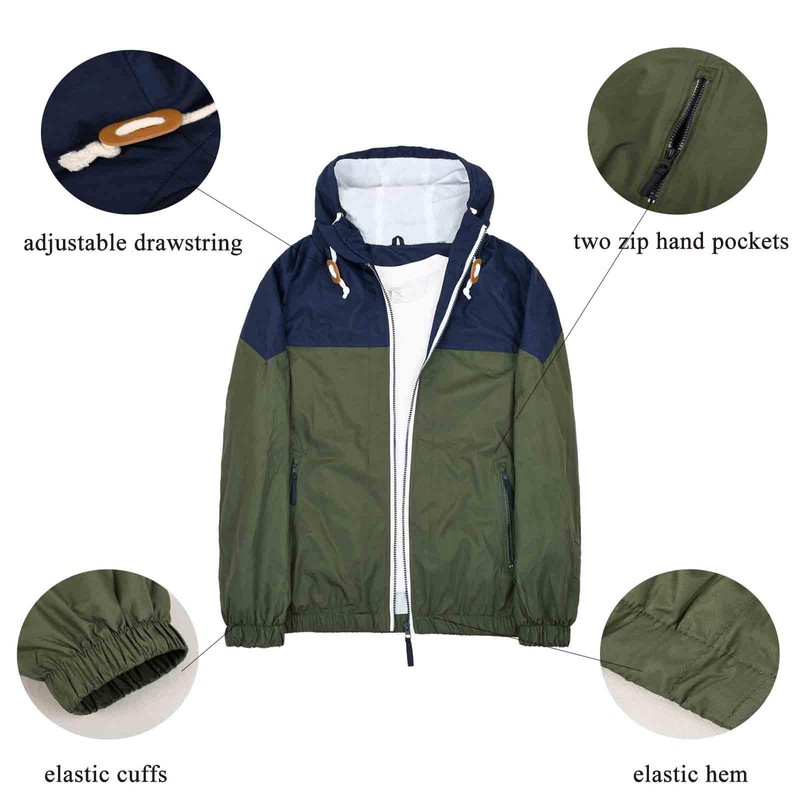 SUNDAY ROSE Men's Waterproof Jacket Breathable Windbreaker Hooded Windbreaker Windproof Rain Coat Shell for Outdoor Navy Green size M